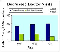 The findings indicate that TM, on average, can reduce the biological age of a person by 5 to 12 years, as well as significantly reducing the incidence of illness and risk of heart disease. Studies also show that TM is found to result in warmer interpersonal relationships, less anxiety, increased self-esteem and self-confidence, increased problem-solving ability and greater creativity. This research has been published in such major scientific journals as Science, the American Journal of Physiology, Scientific American, Lancet, the Journal of Counseling Psychology, the International Journal of Neuroscience, the Journal of the Canadian Medical Association, the British Journal of Educational Psychology, and the Journal of Conflict Resolution. TM comes from from the ancient Vedic tradition - a universal system of knowledge preserved for many generations by a long line of teachers. At present TM is growing at a rate faster than at any other time in its history. There is a great upsurge in interest, particularly among doctors who recognise it as a simple and effective antidote to stress. Scientific research on TM has been conducted at 215 independent universities and research institutes. TM is taught in schools, in prisons, to the military and police forces in many countries around the world. Transcendental Meditation is good for your health.